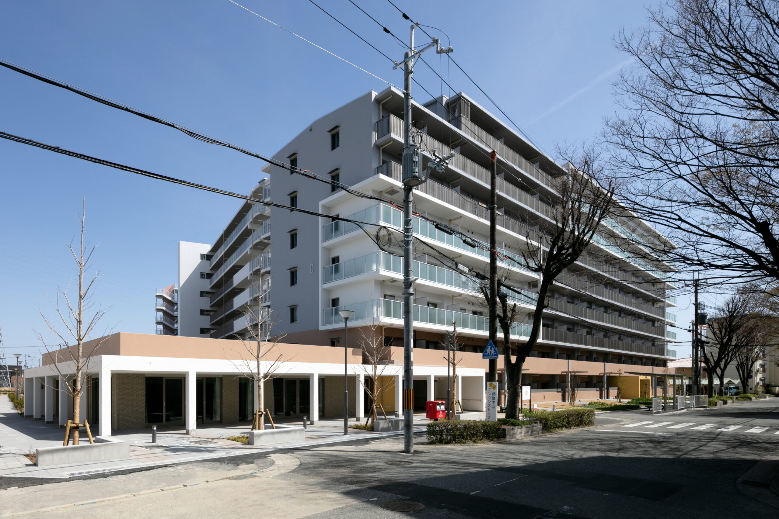 武庫川緑地やホタルの里に隣接し、水・緑との親和性が高い敷地条件を踏まえ、新たに整備する都市計画公園を中心に緑を広げ・つなげる土地利用を企図した。道路、公園の結節点となる団地中央にはまちの中心「コミュニティリング」を形成し、それを核とした回遊動線を形成している。住戸はダイニングアクセスを採用し、比較的小さな面積でもゆとりある居室面積や、移動性の向上を図っている。合わせて、ライフサイクルコストの低減にも配慮した建築、設備の工夫を行っている。